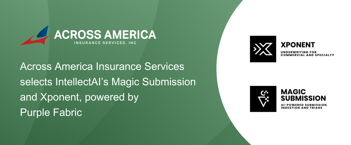 PISCATAWAY, New Jersey — March 11, 2025— IntellectAI, an Insurtech Transformation Partner with end-to-end, AI and data-powered underwriting solutions from Intellect Design Arena, announced a partnership with Across America Insurance Services to drive underwriting accuracy and efficiency with loss run extraction and analysis solutions. The wholesale insurance provider is IntellectAI’s most recent customer for Magic Submission and Xponent, built on IntellectAI’s proprietary Purple Fabric platform.