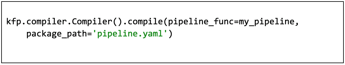 1. Generate Kubeflow Pipeline YAML. Generate the Kubeflow Pipeline YAML using your CICD tool. This YAML file contains all the configurations related to all the components.