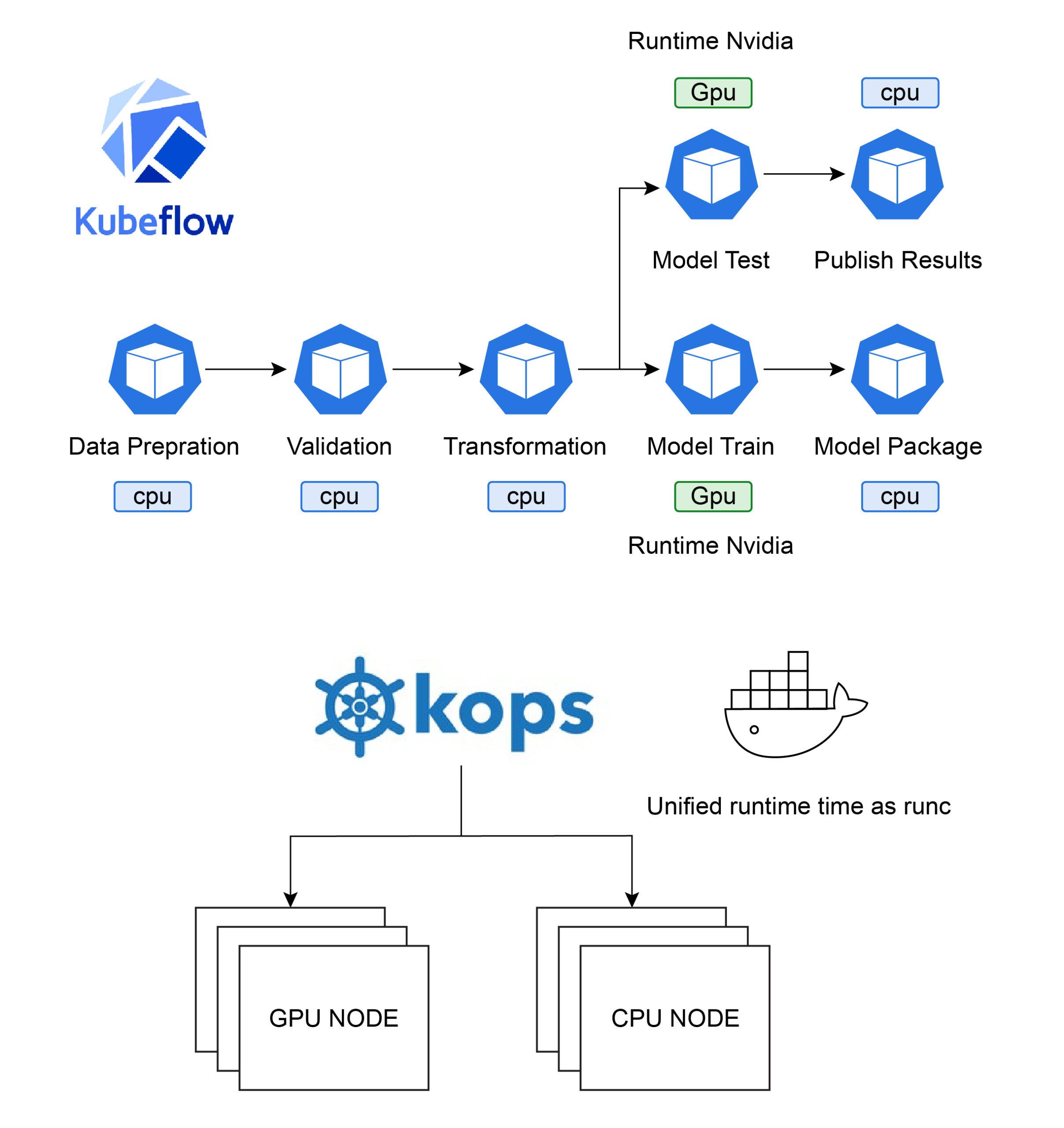 When running Kubeflow Pipelines, components will start running on the K8’s cluster as specified in the pipeline. However, there is a problem when it comes to running GPU workloads. By default, the docker runtime for CPU pods/components is suitable, but GPU workloads require the docker runtime to be Nvidia.