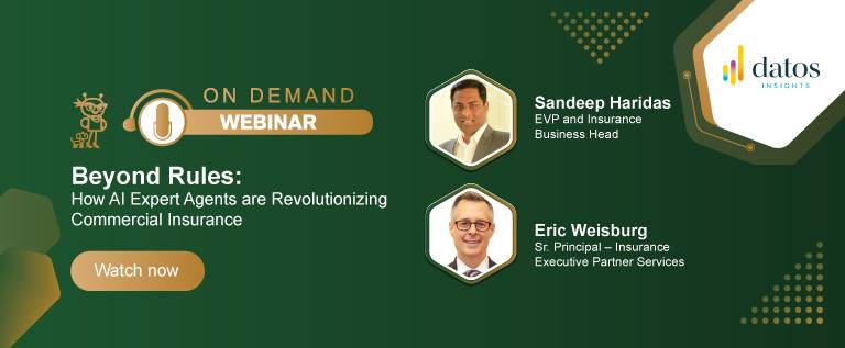 In this on demand webinar, Sandeep Haridas and Eric Weisburg discuss how to transform your underwriting team’s productivity, enhance broker relationships, and ensure regulatory compliance with the power of AI. Learn how leading insurers are using AI expert agents to transform their operations and achieve ambitious growth targets.
